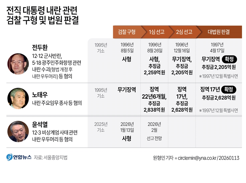전직 대통령 내란 관련 검찰 구형 및 법원 판결