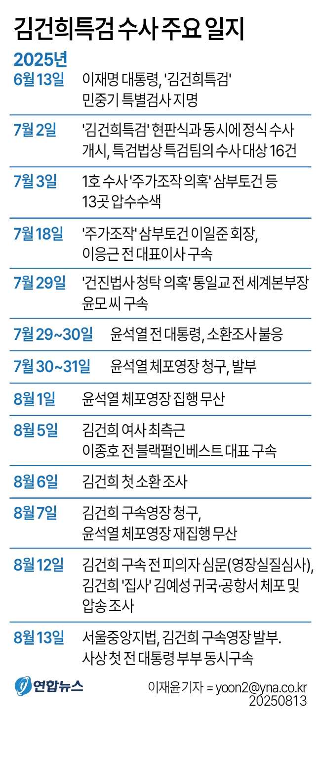 ▲ 8월 12일 = 법원, 김 여사 구속영장 발부