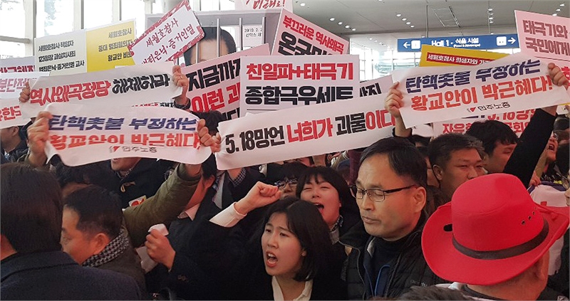 그 시기 방송에서는 어린이들이 ‘자유한국당 해체’라는 노래를 부르는 장면이 반복적으로 송출되고 있었으며, 종로 거리에서는 고등학생으로 보이는 아르바이트생이 ‘황교안을 감옥으로’라는 피켓을 들고 있는 모습을 목격했다.