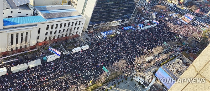 지난 2024년 12월14일 오후 서울 종로구 동화면세점 앞에서 자유공화시민(보수) 단체인 대한민국바로세우기국민운동본부(대국본) 등이 '자유 대한민국 수호 국민혁명대회'를 열고 있다.사진=연합뉴스