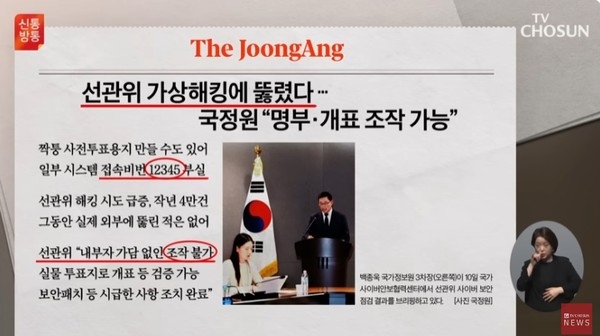 실제로 선관위 컴퓨터의 비밀번호가 12345 수준의 취약한 상태였다는 사실도 드러났다.