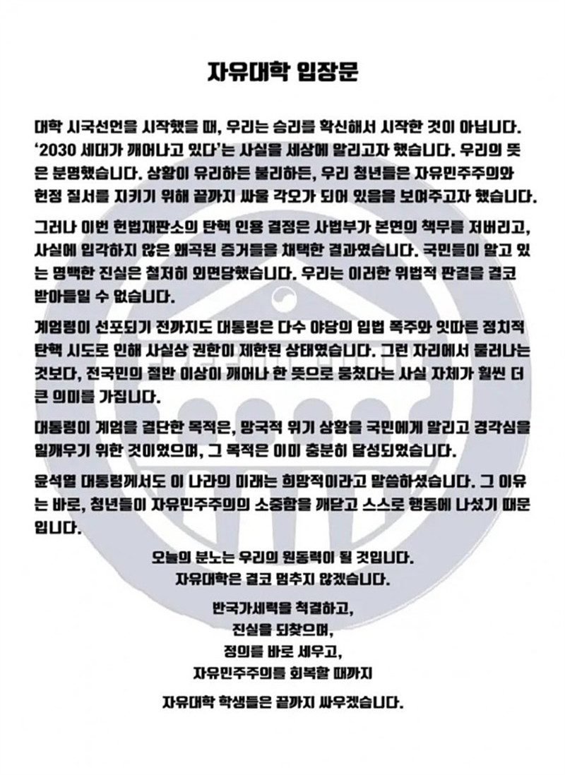 지금 우리 앞에 필요한 것은 체념이 아니라, 결집된 애국의 힘이며, 행동의 투쟁화, 혁신의 지속화로 대한민국을 다시 일으켜 세워야 한다.