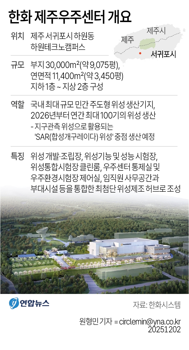 지난 12월2일 제주에 국내 최대 위성제조 인프라인 한화 제주우주센터가 들어선다.사진=연합뉴스