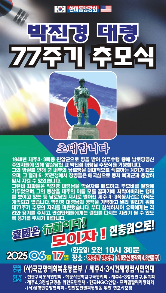 호국의 영웅 故 박진경 대령 제77주기 추모식 행사 홍보웹.사진=뉴스라인제주 캡처