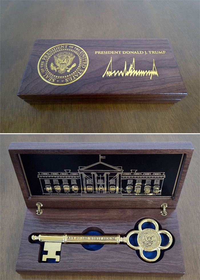 강훈식 대통령 비서실장은 이날 자신의 페이스북을 통해 “트럼프 대통령이 5개만 제작한 백악관 황금열쇠 가운데 마지막 남은 1개를 이 대통령에게 보내왔다”고 밝혔다.